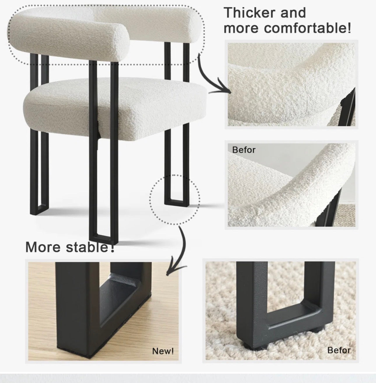 Perfect for both everyday dining and special gatherings, this set blends effortlessly with modern, contemporary, and minimalist interiors. The soft bouclé texture adds warmth and sophistication, while the matte black table base anchors your space with timeless elegance