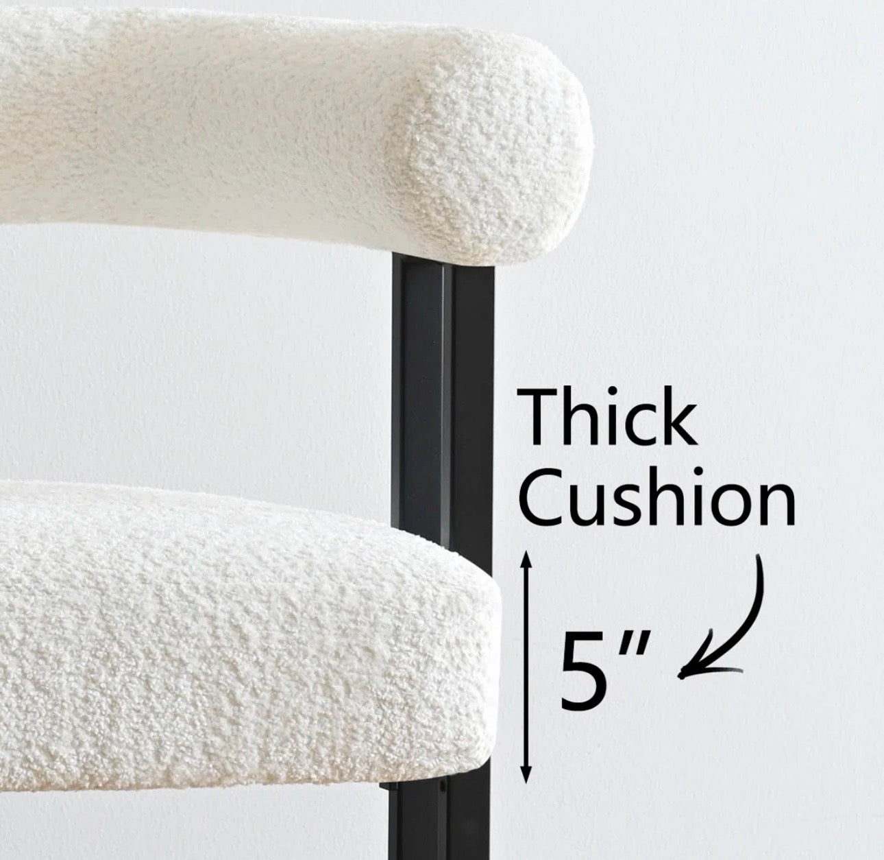 - Comfort First: Soft ivory bouclé upholstery with curved, wrap-around backrests