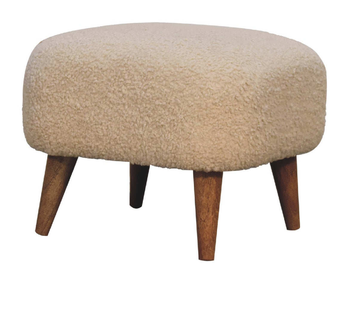 Add a soft, stylish touch to your space with the Cozy Cloud Ottoman. Wrapped in plush sherpa upholstery and supported by sleek, angled wooden legs, this compact piece blends comfort and mid-century charm effortlessly. Whether you’re using it as a footrest, extra seating, or a decorative accent, this ottoman brings warmth and function to any room. Perfect for modern, minimalist, or Scandinavian-inspired interiors.